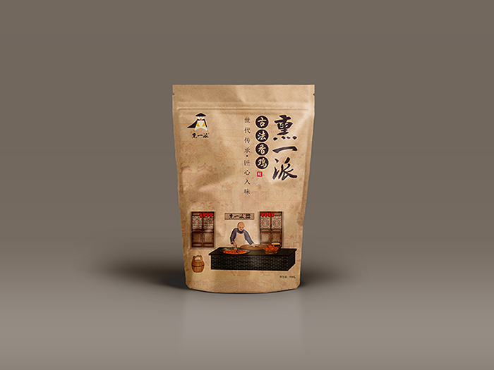 李總一開始將此香雞的做法和南方一樣,稱為燒雞。經(jīng)過我們實(shí)地考察,試吃。其實(shí)這是典型的熏雞做法。整只雞經(jīng)過長達(dá)10個小時的鹵煮,味道已經(jīng)進(jìn)入到雞肉中,瀝干水后再用冰糖熏烤,色澤紅亮,極富嚼勁。于是,我們將此香雞命名為“熏一派”,在品牌命名中直接將此雞的做法亮出來,一方面可以讓顧客一目了然,知道我們的香雞特點(diǎn);另一方面極大的降低傳播成本。且熏一派三個字簡單易懂,讀音平仄起伏,鏗鏘有力;派還有自成一派,門派之說,更表明我們立志做好的決心。