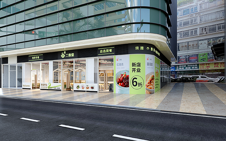 商務簡餐、現(xiàn)炒快餐空間裝飾裝修設(shè)計、快餐店門頭招牌設(shè)計、自選快餐餐線設(shè)計